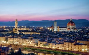 絵画風 壁紙ポスター フィレンツェの夕暮れ夜景 サンタ マリア デル