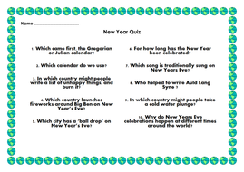 Quiz About New Year Celebrations Teaching Resources